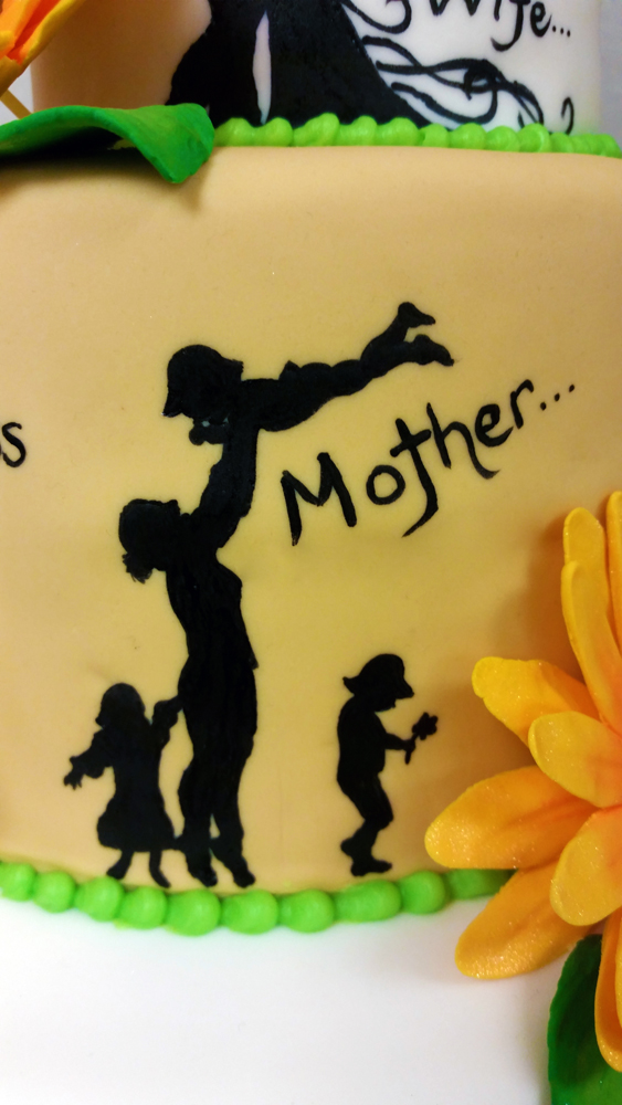 Close up of sunflower and roses cake